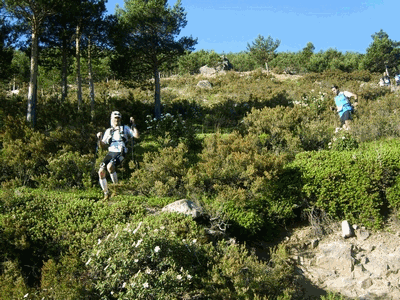 Pensando en estas tonterías estaba cuando llegué al Refugio Giner, voy solo, subo entre las jaras a buen ritmo, me veo fuerte pero procuro no emocionarme mucho, el camino es conocido y voy alcanzando corredores que poco después quedan atrás. Es este tramo uno de esos lugares en los que desconectas un poco de lo que vas haciendo, con una musiquita en la cabeza que te marca el ritmo, esta vez era una parte de “Party Rock Anthem” de LMFAO, sigues adelante sin darte cuenta de lo que estás haciendo, cada metro que avanzas es un metro menos para el final, y si no lo sufres mejor.