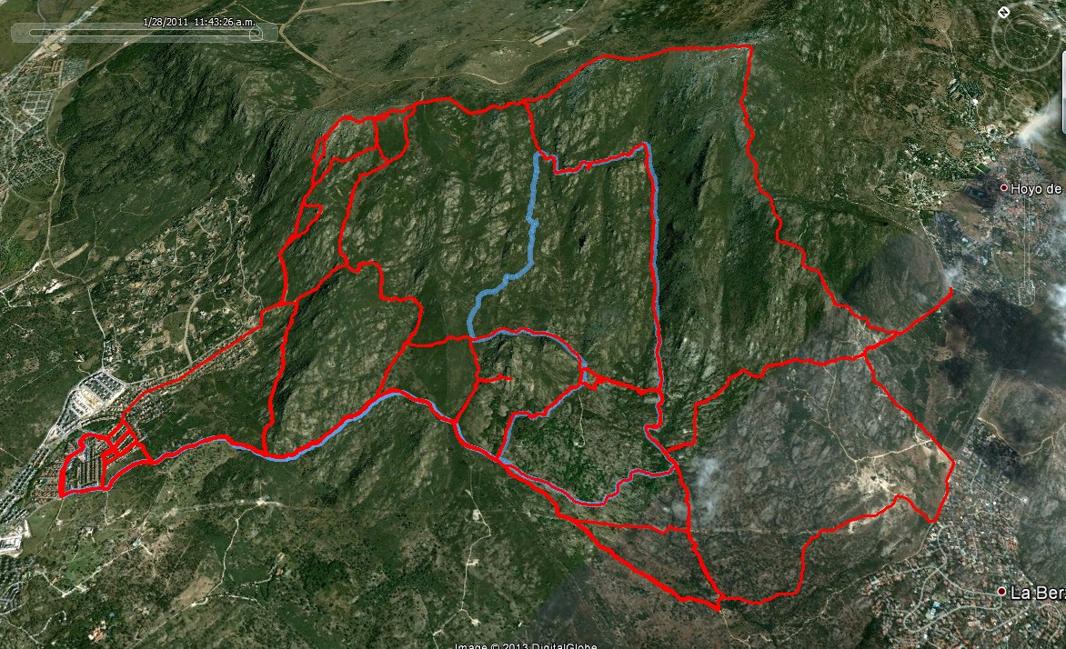 Puerto de Navacerrada. Bajar de Bola no ha sido tan duro como esperaba y continúo corriendo hacia Cercedilla hasta que llega un punto en que los cuadriceps me dicen que no puede ser mas, que ya basta. Pero yo hoy soy un niño obstinado y sólo veo el abrazo del final. Los niños son así, nunca se plantean la retirada, eso no entra entre sus posibilidades. Esa alternativa no existe. El héroe ni abandona ni se rinde.