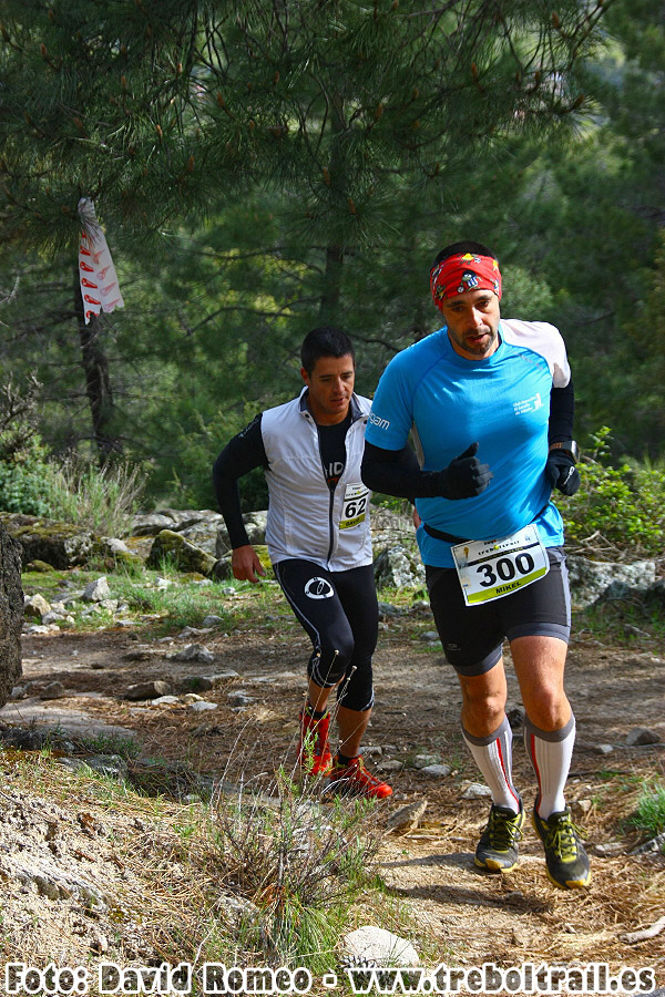 Esta vez sin descanso ni zona intermedia tras bajar al valle solo queda subir, campo a través, hasta el depósito, ya no quedaban fuerzas para correr pero todavía podía darle fuerza al caminar, ya en la Sendade los Cazadores, aprovechando “mis” quinientos metros de gloria, volví a alcanzar a las chicas antes de llegar a la trialera que lleva al Pico Martillo. Saber que todo lo que quedaba por delante era capaz de hacerlo corriendo me ayudaba a sobrellevar el cansancio, no iba a ser hoy el caso pero implicaba una menor dificultad en la pendiente. Llegando al merendero de los forestales volvió a adelantarme, ya de manera definitiva María Luisa, que dejaba atrás a su principal oponente. Sin cegarme pero sin dejar que se escapara demasiado acometí el último cortafuegos por la parte del pinar, que creo que es incluso más dura que el cortafuegos en sí. Poco a poco, apoyando las manos en las rodillas al estilo del corredor de monte, veo como esa última subida se va terminando, antes de llegar al avituallamiento Angelete llega a mi altura, acompañándome ya hasta los últimos metros. Mientras tanto, Lluvio sigue cincuenta metros por delante… ¡qué cansino es el tío!